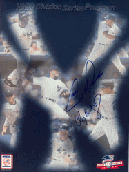 1999 American League Divisional Series Game Program, New York Yankees verses the Texas Rangers. The program is signed on the cover by CLAY BELLINGER & ALLEN WATSON. The Yankees beat the Rangers in three games. Unscored, 84 pp. Comes with a Mendy’s Certificate of Authenticity.